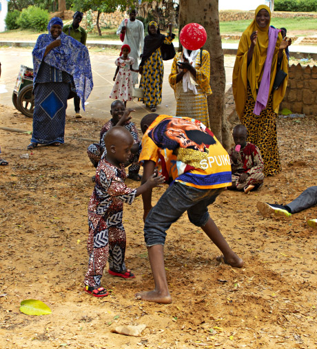 C’est ainsi qu’au bout de 4 mois Mohamed Lamine a fait son premier pas. Il a acquis la capacité de mouvoir ses jambes, mais a peur de tomber. Là aussi l’éducateur spécialisé a détecté un manque de confiance. La crainte que la nouvelle compétence (marcher) ne soit pas suffisamment maitrisée pour le protéger des expériences de chute qu’il connait déjà. Maintenant Mohamed Lamine est parmi ses camarades le champion de lutte incontesté. En effet, lors de notre rencontre d’apprentissage et de découverte effectué au musée, l’animateur a organisé un tournoi de lutte entre les enfants atteint de trisomie 21. Et Mohamed Lamine a terrassé Abdoul Karim, puis Abdoul Hakim et Abdoul Nasser. A l’image de la légende de Soundiata Keita, roi du manding, qui, lorsqu’il a fait son premier pas, a arraché un baobab pour le déposer au pied de la concession de sa mère, Mohamed Lamine a terrassé ses aînés dans un tournoi de lutte, devenant ainsi le roi de l’arène.